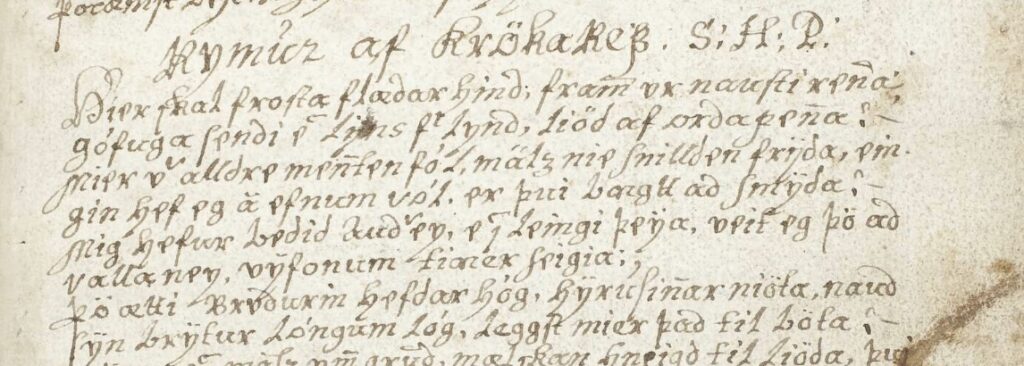 In my talk, I will introduce the project “Riches to Rags: The Popularisation of Rímur Poetry in Post-medieval Iceland” (Project Leader: Margrét Eggertsdóttir), funded by the Icelandic Research Council (grant no. 2511601-051). Among the project goals is the development of a database of rímur poets active during the period from approximately 1550 to 1725, surviving rímur and associated manuscripts. Building on the extensive work of Finnur Sigmundsson on premodern rímur and rímur poets, we hope to demonstrate the versatility of rímur as a poetic form after 1600 and the increasingly prominent presence of rímur in non-elite manuscript culture.